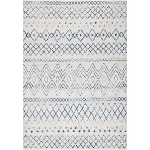 Introduce a touch of elegance to your space with this 3 foot by 5 foot area rug in a sophisticated blend of ivory and navy. With its small rectangular shape and 3/8 inch height, this rug is power loomed from polypropylene, ensuring a balance of function and style. Crafted in Turkey, it brings a Bohemian vibe, effortlessly enhancing your room's ambience. The subtle interplay of its colors adds a layer of depth, making it versatile for various spaces. Whether placed in a living area or bedroom, this rug's understated design is sure to complement your decor gracefully.