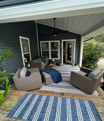 Guests appreciate the vibrant colors and stylish designs of these outdoor rugs, which enhance their patios and living spaces. Many find them durable and easy to maintain, making them ideal for various outdoor settings. The rugs are praised for their comfort underfoot and ability to withstand different weather conditions. However, some guests have noted issues with flattening and fading over time, suggesting careful consideration for long-term outdoor use.