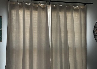 really nice curtains! they are going to be great in the summer for keeping the room cool since they are so blackout. probably the best blackout curtains i’ve bought especially considering i got the off white color. they are heavy and soft to the touch. i got the 50x63 size and did a faux pinch pleat with ring clips which helped it look less messy and less like a big blanket on the window lol. the pictures are with the blinds open vs closed. and even with them open it still blocks out a lot of the light but atleast u can tell what time of day it is.