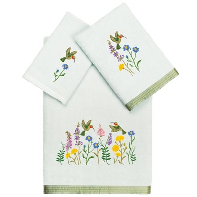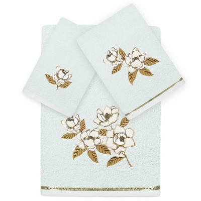 3pc Aaron Design Embellished Assorted Bath Towel Set Aqua - Linum Home Textiles: Midweight Terry