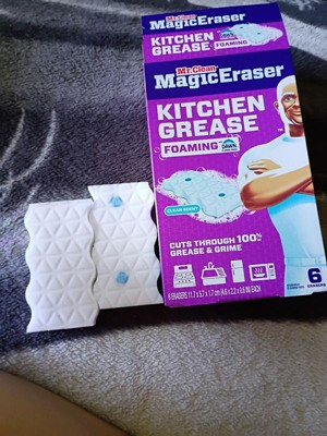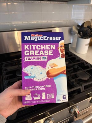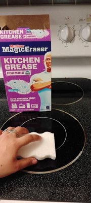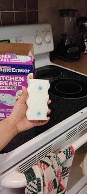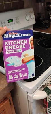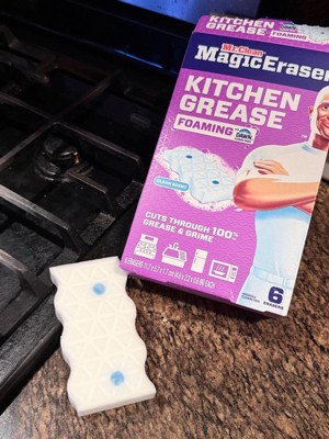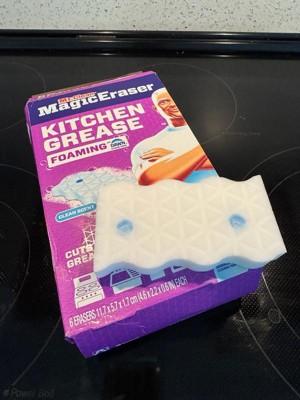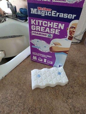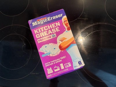 [This review was collected as part of a promotion.] This will definitely always be a must in my kitchen Mr Clean Magic Eraser Kitchen really does cut through all that great and leaves a nice shiny clean use it on stove tops microwaves and whatever else to eliminate that grease