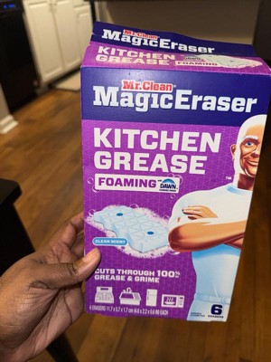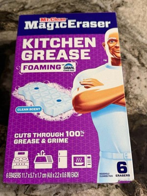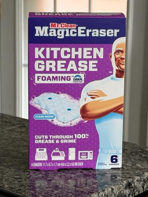 [This review was collected as part of a promotion.] Mr. Clean is doing good things with this Magic Eraser kitchen grease i love that they have Dawn in them just wet and squeeze to activate. It foams up really well my sink is from the 90's and has really tough stains have tried for the last 8 yrs to get rid of. I was able to get most of it off I'm so pleased.
