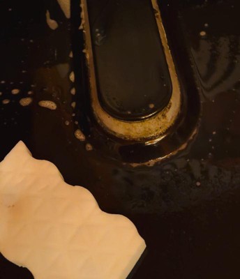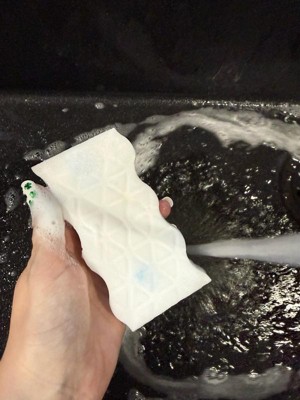 [This review was collected as part of a promotion.] This sponge works wonders to remove all that greasy feeling that gets left behind. You can also use them to clean all appliances. Smooth texture and don’t take no soaking fast clean.