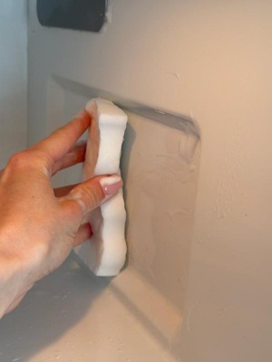 [This review was collected as part of a promotion.] I really wanted to love this magic eraser. Unfortunately this product didn’t live up to expectations. While it does start off promising, the foaming action kicks in quickly and helps cut through grease, it doesn’t last long! After a short while the foam completely disappears. Even more frustrating is how quickly the sponge breaks down. As you scrub, it starts to fall apart leaving particles everywhere. Concept is great but the durability and short lived foaming make it hard to highly recommend.