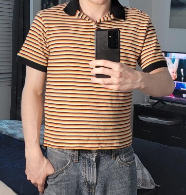 Men's Striped Collared Polo Shirt - Original Use™ M Orange/Black: Cotton, Short Sleeve