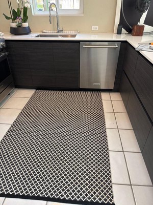 A simple geometric grid pattern that blends with all decor styles. With a tight, low-profile weave in easy-care fibers, this versatile area rug is suitable for entryways, patios, kitchens, inside and out, and anywhere that needs protection from heavy foot traffic. Made of quick-drying polypropylene that will not mold or lose its vibrant color that will last for years to come