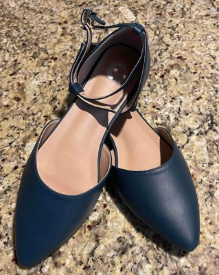 • A: The flats feature an almond toe design, offering a sleek and timeless appearance.