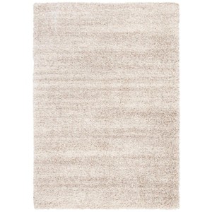 The tone-on-tone pattern exudes a subtle elegance, incorporating a blend of ivory and beige hues to create a warm, inviting atmosphere in any room. The design features a gentle flow of color that adds depth and interest, making it a versatile addition to both contemporary and traditional decors. With its comforting softness and sophisticated appearance, this shag rug not only becomes a centerpiece but also a fundamental part of your homes comfort and style.