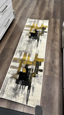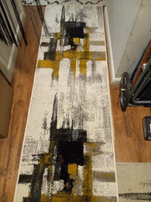 [This review was collected as part of a promotion.] I received the 2 by 7 inch Contemporary Modern Runner Rug by World Rug Gallery in Abstract Gold. This was easy to open and u roll. If it won't lay flat, just roll the opposite way and relay it down again. The length is just right for my mini hallway and goes perfect with my gold black and white tapestry that's hanging. This basically can go anywhere if this is your color pallet.
