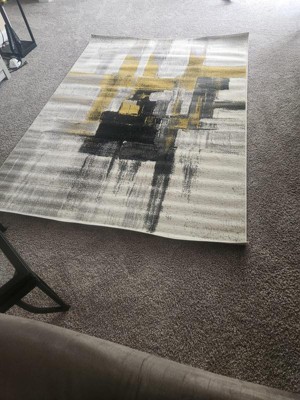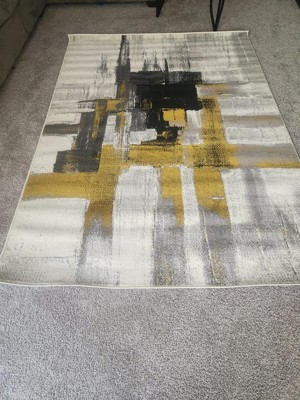 [This review was collected as part of a promotion.] The World Rug Gallery Contemporary Modern Abstract Gold rug is a striking rug. Viewed from my second floor, it looks like an abstract piece of art on my floor. The main drawback of the rug is that it is kind of thin. It is not plush under your feet.