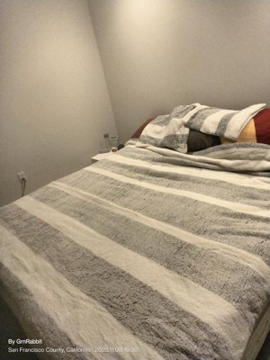 [This review was collected as part of a promotion.] I’m truly and wholeheartedly obsessed with this comforter. It’s so fuzzy and comfortable I never want to get out of bed! I’m excited to go to sleep! Bonus, the same Sherpa material that’s so fuzzy and magical, is also on the two pillow cases. It’s like you’re being snuggled by your favorite teddy bear. The diagonal thick stripes make this very visually appealing with a clean look. Hands down best thing that’s ever happened to my sleep game!