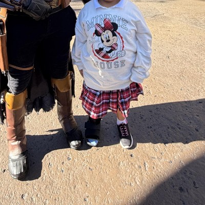 Super soft, oversized sweater. The skirt is so cute. It’s not too short or too long. It’s got an elastic waist band that makes it so easy to get dressed. Great outfit for any day, especially a day at Disneyland.