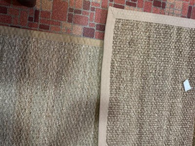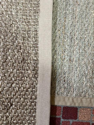 When ordering, I bought 2 of the same rug with same beige border, but in different sizes. Received two different weaves/colorways of the rug. One(2.5x5) is greener and the texture I was expecting of a seagrass rug. Border is just the right size and color beige, rug made well. The other rug(3x5) is a completely different seagrass texture, color and the border is a different beige... much wider band. Very disappointed since these were for the same room. Not bothering to pay for return because it's a heavy rug. The rugs were on sale.