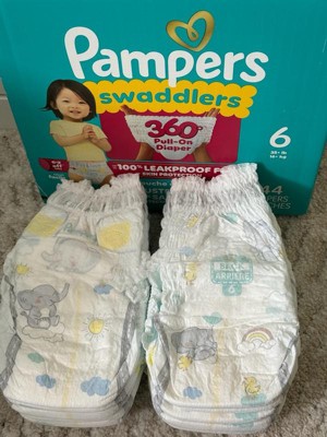 From the #1 Pediatrician Recommended Brand*, Pampers Swaddlers 360 degrees are designed to support your toddler's movement from crawling age to standing age with a 360-degree stretchy waistband. The new EZ-off tabs make changes stress-free and mess-free-whether your little one is lying down or standing up-just tab off, wrap up, and pull on a fresh diaper pant.