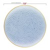 Upgrade your tables with our Clear Blue with Gold Rim Hammered Glass-Style Appetizer Plates (7.5"). Disposable and stylish, these plastic plates offer hassle-free cleanup and are ideal for any event.