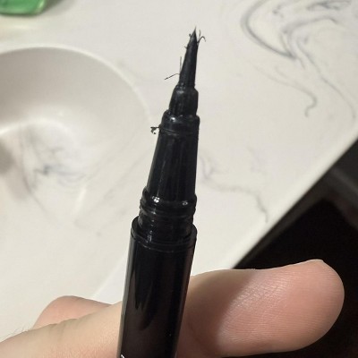 i dont know if i got a defective one but it is not the same color as advertised on the packaging. the top two lines of dark blue is the pen i swatched from this nyx epic ink liner