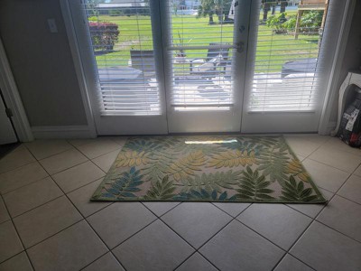 Guests appreciate the vibrant colors, texture, and quality of this rug, which enhances various outdoor and indoor spaces like patios, decks, and lanais. While many are pleased with its appearance and durability, some have encountered issues with dye lines and defects. Overall, it adds a stylish and comfortable touch to any setting.