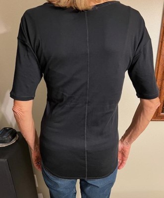 I like the curved hem, neckline, and the length of the sleeves. Also the fabric is lightweight; good for my climate. Original order was Small and didn't like the fit; returned and got an XS and very happy with it now.