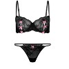 • Peek-a-boo cutout lace cups adorned with bows