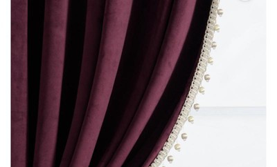 [This review was collected as part of a promotion.] If your looking to step up your style of curtains for a upscale sophisticated look, then these curtains will definitely do the job.This luxurious window curtain is a velvety lined curtain along with a silky Pom -pin trim. Measuring 52 inches across and 84 in height. Going from plain curtains to these made the room brighter! Now I need a few more panels to put in the window above my bathtub to match.