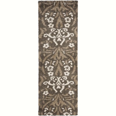 Florida Shag SG457 Power Loomed Indoor Runner Rug - Smoke/Beige - 2'3"x11' - Safavieh