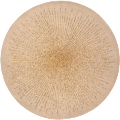 Elevate your living space with the serene elegance of our Beige Nimbus Round Area Rug. Crafted by skilled artisans from India, this 8' x 8' round rug features a height of 5/8" and is hand-tufted with a luxurious blend of wool and viscose, offering a touch of subtle sophistication and comfort underfoot. The rug boasts a minimalist vibe, with its undyed beige hue providing a versatile base that complements a variety of decors, from modern to classic. Whether anchoring your living room furniture or adding warmth to your bedroom, this area rug's round shape creates harmony and balance throughout your home. Designed for those who appreciate artisanal workmanship and timeless design, the Beige Nimbus Round Area Rug seamlessly blends into any setting, inviting a sense of calm and tranquility. Its understated beauty is a testament to the simplicity of design, making it a fitting choice for those with a discerning taste for subtle yet impactful home furnishings.