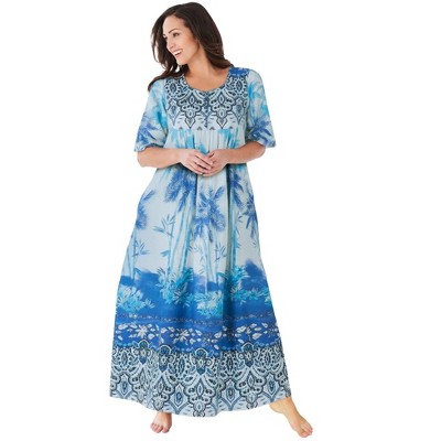 Dreams & Co. Trapeze V-Neck Short Lounger - 5X, Bright Cobalt Tie Dye Stripe