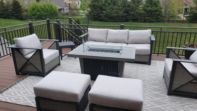 EASY CARE: For an outdoor rug, remove debris frequently with the use of a broom or blower. To wash, spray the surface with a soap and water mixture, then rinse thoroughly with a garden hose and hang over a railing to dry thoroughly. Rotate for even wear.