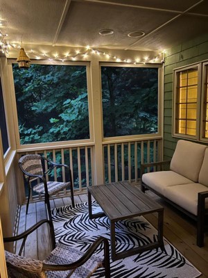 This rug was perfect for our screen porch - looks sharp, brightens the space and is doing well in the outdoors. Delivery was outstanding - quick and secure.