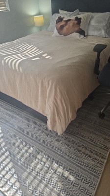Guests appreciate the versatility and aesthetic appeal of these rugs, finding them suitable for both indoor and outdoor use. Many highlight the beautiful colors and patterns that enhance their spaces, from kitchens to patios. The rugs are noted for their durability and ease of cleaning, making them ideal for high-traffic areas. However, some guests mention color discrepancies and the need for proper drying after rain, which are manageable concerns.
