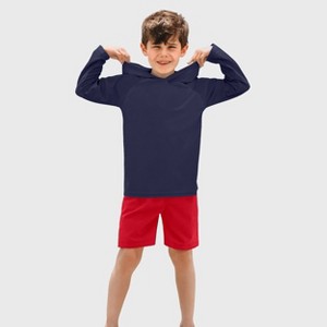 City Threads Swim UPF 50+ Hooded Long Sleeve Rashguard Tee for Boys and Girls - USA-Made - 1 of 4