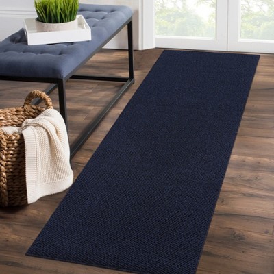 Nourison Versatile Solid Diamond Indoor Outdoor Flatweave Runner Rug Navy Blue 2' x 6'
