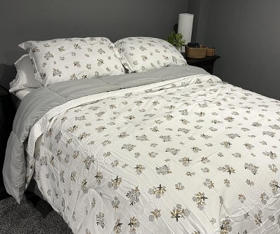 Introducing our Floral Printed Comforter Set with Pillowcases, the ultimate bedding ensemble crafted to elevate your sleep experience throughout the year. Featuring a charming floral print, this set effortlessly adds a touch of elegance to your bedroom decor. Whether it's the brisk chill of winter or the balmy breeze of summer, our versatile comforter ensures you're cozy and comfortable. The complete set includes a luxuriously soft comforter and matching pillowcases, providing a cohesive and stylish look for your bed. Made from high-quality materials, our bedding set is not only durable but also easy to care for, ensuring long-lasting beauty and comfort. Transform your bedroom into a serene sanctuary with our Floral Printed Comforter Set, where style meets comfort for a restful night's sleep.