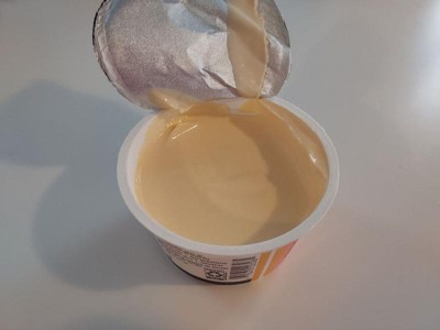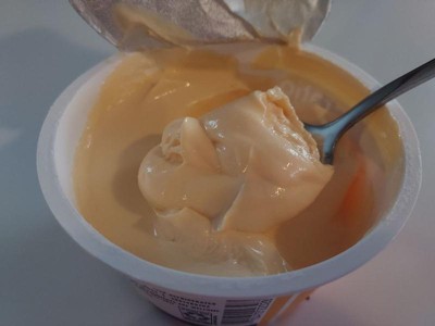 [This review was collected as part of a promotion.] This product has a luscious mouth-feel and a wonderful silky texture. It contains real ingredients with no artificial additives. It's low in fat and comes in convenient aseptic, single-serve packaging. Stirring the product is the best part. It holds it shape. The peach flavor is delightful.