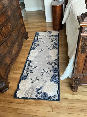Nourison Aloha Contemporary Floral Border Outdoor Runner Rug Blue Grey 2' x 6'