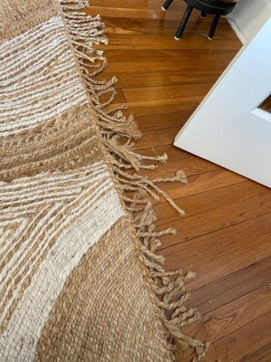 [This review was collected as part of a promotion.] I love jute rugs, but many of them are a bit bland. This one is stunning! The swirl pattern add some fun while staying neutral, and the finge on the two sides adds a bit of flair. I really love this rug!