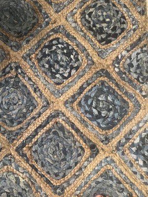 [This review was collected as part of a promotion.] This rug design has neutral colors which I think is very aesthetically pleasing. In my opinion, this is not a practical material for a household. It is made of jute which is a natural fiber and woven with denim. It doesn’t feel good under my feet. It’s feels like an outside rug but the description states that you can’t put it outdoors. I would have anyone reconsider buying this since the material is not comfortable to walk barefoot on and it would be so hard to clean. I honestly don’t see this rug lasting long.