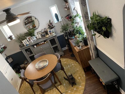 I ended up returning this one for the 7'10 one but that exact rug is now in our dining room and truly 'ties the room together'! The cat is an additional plus! I will say that it is still having some difficulty laying completely flat because it was oddly rolled and folded