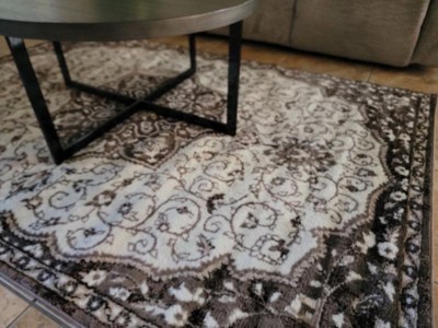 [This review was collected as part of a promotion.] Wow! Beautiful rug with eye-catching medallion design. The color scheme makes it easy to pair with just about any room decor you have. The rug measures 5x7 so it was a perfect fit in front of my living room sofa with my round coffee table centered in the middle. It is easy to maintain and looks easy to spot clean when needed. The rug was easy to unroll and set up. I rolled it opposite the direction it came in to help with the edges that were lifting, but it hasn't even been 24 hours and the rug is already flattening and settling nicely. I absolutely love it and recommend this beautiful and durable rug!