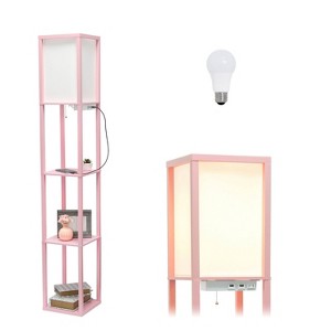 Floor Lamp Etagere Organizer Storage Shelf with 2 USB Charging Ports and Linen Shade - Simple Designs