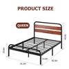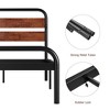 - Refined and Industrial Aesthetic: The combination of rustic wood grain panels and a sleek black metal frame bestows this brown bed frame with a stylish fusion of refinement and industrial charm, making it a versatile fit for any decor aesthetic.