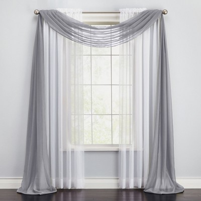 51"x24" No. 918 Sheer Erica Crushed Voile Ascot Beaded Rod Pocket Curtain Valance Charcoal: Machine Washable Polyester