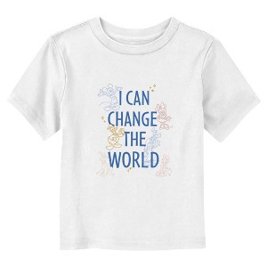 • The smallest family members are also the most stylish with this new toddlers' t-shirt that is perfect for every occasion! Featuringthe phrase: "I Can Change the World," along with outline versions of Mickey, Minnie, Donald, Goofy Daisy, and Pluto.