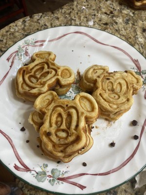 [This review was collected as part of a promotion.] Weekend morning breakfast was a huge hit! This is super easy to use & fun for the kids to help & eat. I would say to use cooking spray to make the waffles come out easily. We had 3 kids & 4 adults over for breakfast to test it out. Loving that this is double sided so you can make 6 at once, taking approximately 3-4 minutes to completely cook. Would recommend for Disney park like waffles at home.