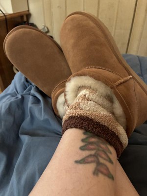 Fireside by Dearfoams Women's Riverland Genuine Shearling Micro Bootie - Chestnut Size 9W