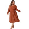 Agnes Orinda Women's Plus Size V Neck Long Sleeve Tie Belt Flowy Midi Swiss Dot A Line Dresses - 1 of 4