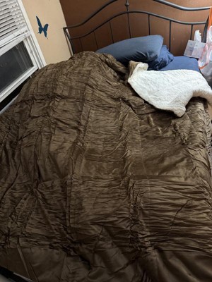 Indulge in cozy comfort. The ultra soft reversible design faux shearling minky comforter set is ideal for cold places or winter use, and you may enjoy a wonderful night sleep and lay in the softness and coziness. Reversible comforter set crafted for both comfort and aesthetic appeal, this set is the perfect addition to your bedroom. Covered in ultra-soft minky fabric on one side and cloud-like white faux shearling on the other side, this comforter ensures great warmth and supreme softness. The comforter is designed with box stitching to avoid any shifting, and the exquisite stitching prolongs the service life of this down alternative comforter. Two included pillowcases featuring invisible zipper closure complete the overall looking of the bedding set. Experience the versatility of our reversible comforter with matching cases. Choose from: Gold/Heavyweight,Gray/Heavyweight, Chocolate/Medium Weight, Dark Gray/Medium Weight, all-season weight. Machine washable.