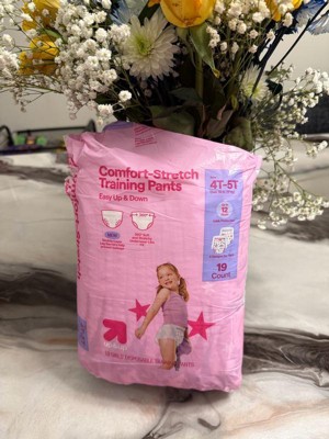 Your toddler will be ready for everyday adventures in these 19-Count Disposable Training Pants from up&up™. Made from breathable materials, these disposable pants help keep skin dry and healthy, while the 360° waistband provides stretchy comfort for an underwear-like fit. These pants boast an ultra-absorbent channeled core with improved absorbency, and a wetness indicator that changes color when wet. Featuring double-layer leg barriers for up to 12 hours of leak protection, these training pants offer easy ON and OFF for teaching independence and have tear away sides for quick changes. Cruelty free, the pants are made without natural rubber latex, lotions, elemental chlorine or fragrances. Additionally, we also offer nighttime training pants and are introducing ingredients on the packaging for the first time for complete transparency.