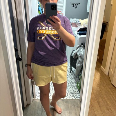 I bought a size medium in these shorts as I wanted them to be loose and comfortable. They have a drawstring waist and these sweatpants material is super soft and uncomfortable. The pale yellow of these shorts is absolutely stunning. This isn’t a color I would normally wear, but I was pleasantly surprised by how much I love it. The coordinating tops are also an added bonus for these shorts .