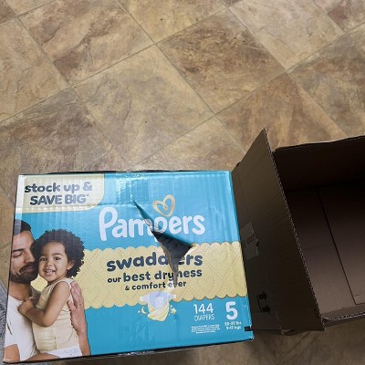 Wrap your baby in our best dryness and comfort ever. Try Pampers Swaddlers. These Pampers disposable diapers are designed with a KeepDry Liner and irresistible pillowy softness to keep your baby dry and comfortable from their very first days and beyond. Plus, they're drier than the Luxury Diaper for all-night comfort. Pampers Swaddlers are dermatologist tested, hypoallergenic, and free of elemental chlorine, parabens, and latex** to protect babies' sensitive skin. Pampers Swaddlers surround your baby with up to 100% blowout and leak protection, thanks to their absorbent core and All-Around LeakGuard with Blowout Barrier. Trusted by pediatricians and parents alike, Pampers Swaddlers are from the Most Awarded Diaper Brand^, the #1 pediatrician recommended brand^^, Best of Babylist winner, and the #1 choice of parents^^^. Pampers has been providing products that prioritize comfort, safety, and effectiveness for over 60 years. Earn savings while you shop with Pampers Rewards. Every 10 scans = $10 off. Scan. Earn. Repeat. Use them with Pampers Sensitive Baby Wipes for healthy skin. Pampers Swaddlers are available in preemie diapers, newborn diapers, and size 1 through size 8. To find your baby's ideal fit, just measure by weight and reference our available baby diaper sizes. Pampers preemie diapers (up to 4 lbs.), newborn diapers (up to 10 lbs.), size 1 diapers (8-14 lbs.), size 2 diapers (10-22 lbs.), size 3 diapers (13-26 lbs.), size 4 diapers (15-34 lbs.), size 5 diapers (20-37 lbs.), size 6 diapers (23-34 lbs.), size 7 diapers (26-50 lbs.), size 8 diapers (30+ lbs.). *Based on S4 Luxury Diaper Brand. 3 typical wettings of 75mL **No natural rubber. ^ Based on Awards Given 2021-2025 ^^ Based on 2024 survey of U.S. and Canadian pediatricians. ^^^ Based on Nielsen dollar sales L52W